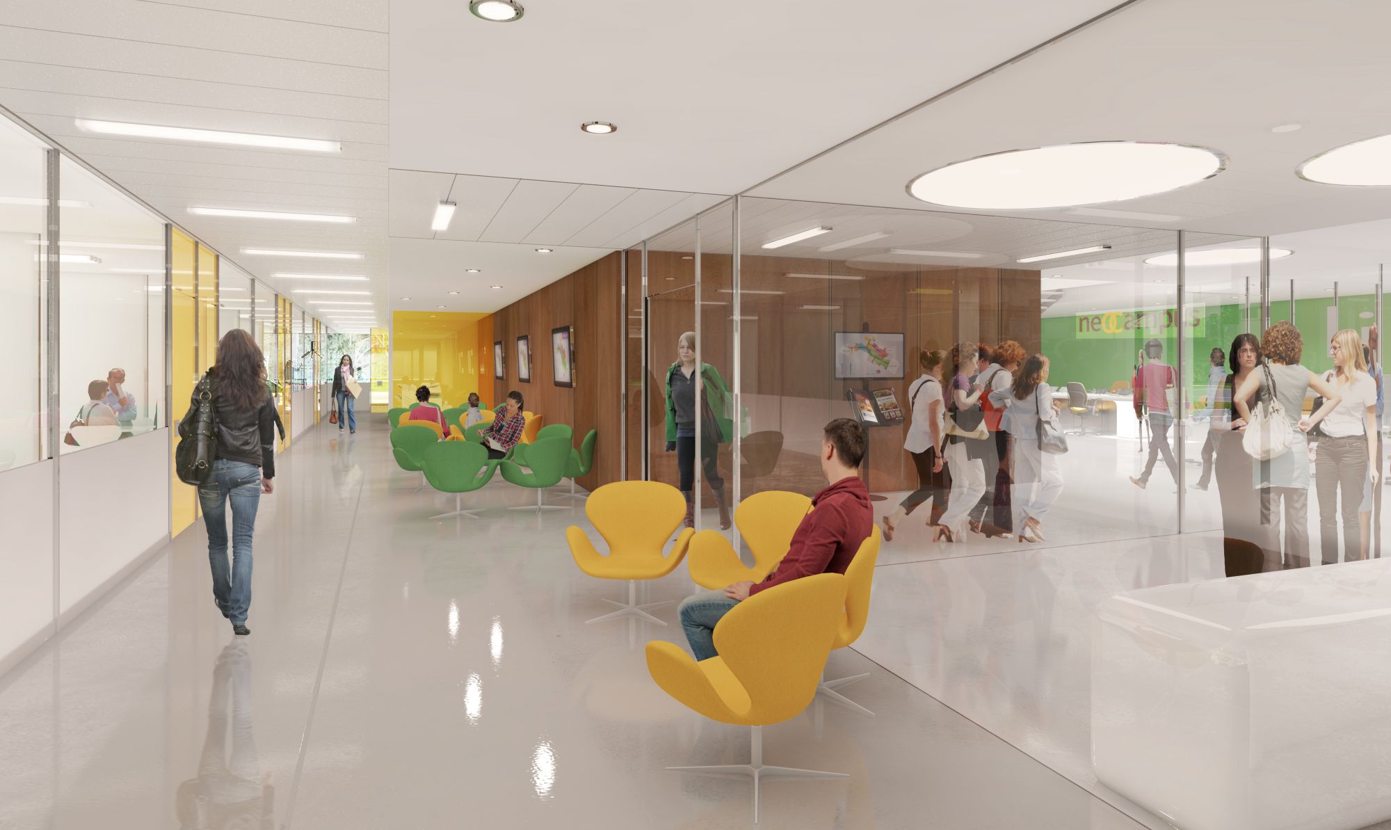 Well located at the epicentre of the University, it establishes dialogue with the campus and the adjoining. A single entry point for new entrants on pedagogical support and self-training, it welcomes 3,360 people, including 2,980 students. Its architecture completes the island, assigning to the ground its unitary and unifying power. Like a carpet looped by the limits of the sidewalks, the ground welcomes the inhabited park, fresh, shaded, mineral and vegetal and imposes it as public space.