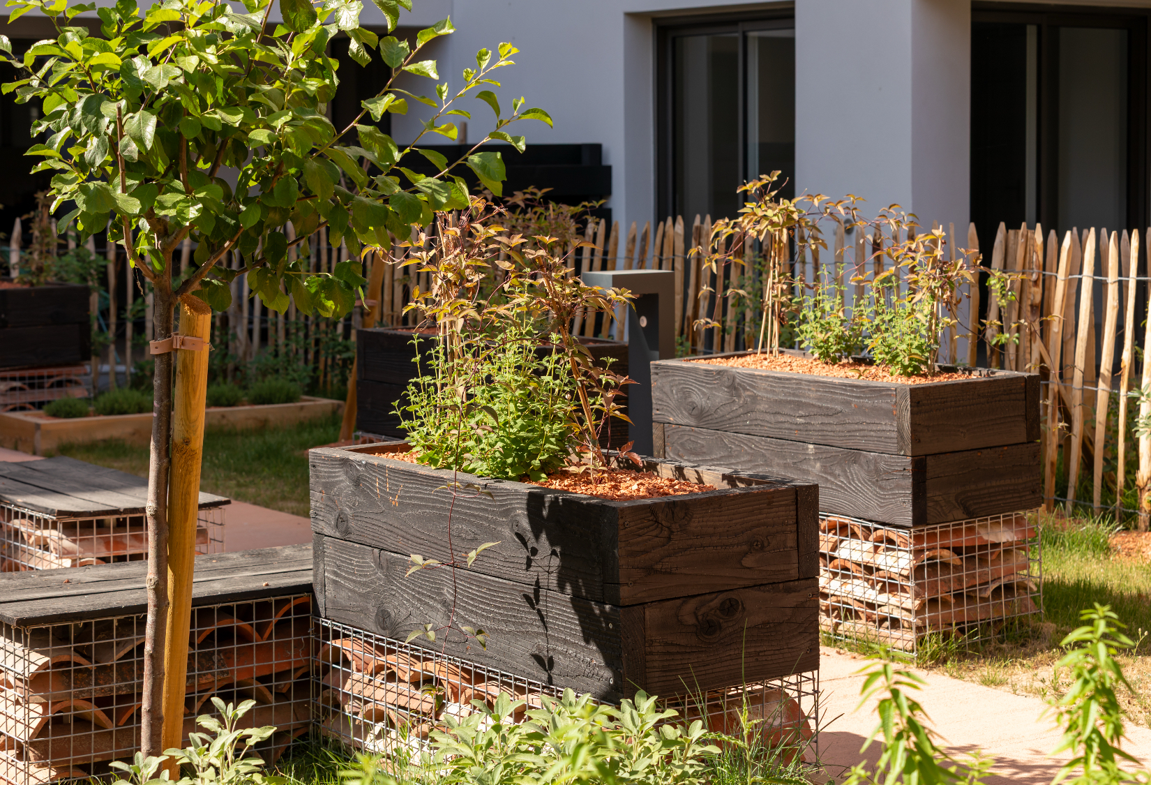 Dans les logements en rez-de-chaussée tournés vers le coeur d'ilot, ces loggias se prolongent en généreux jardinets privatifs.