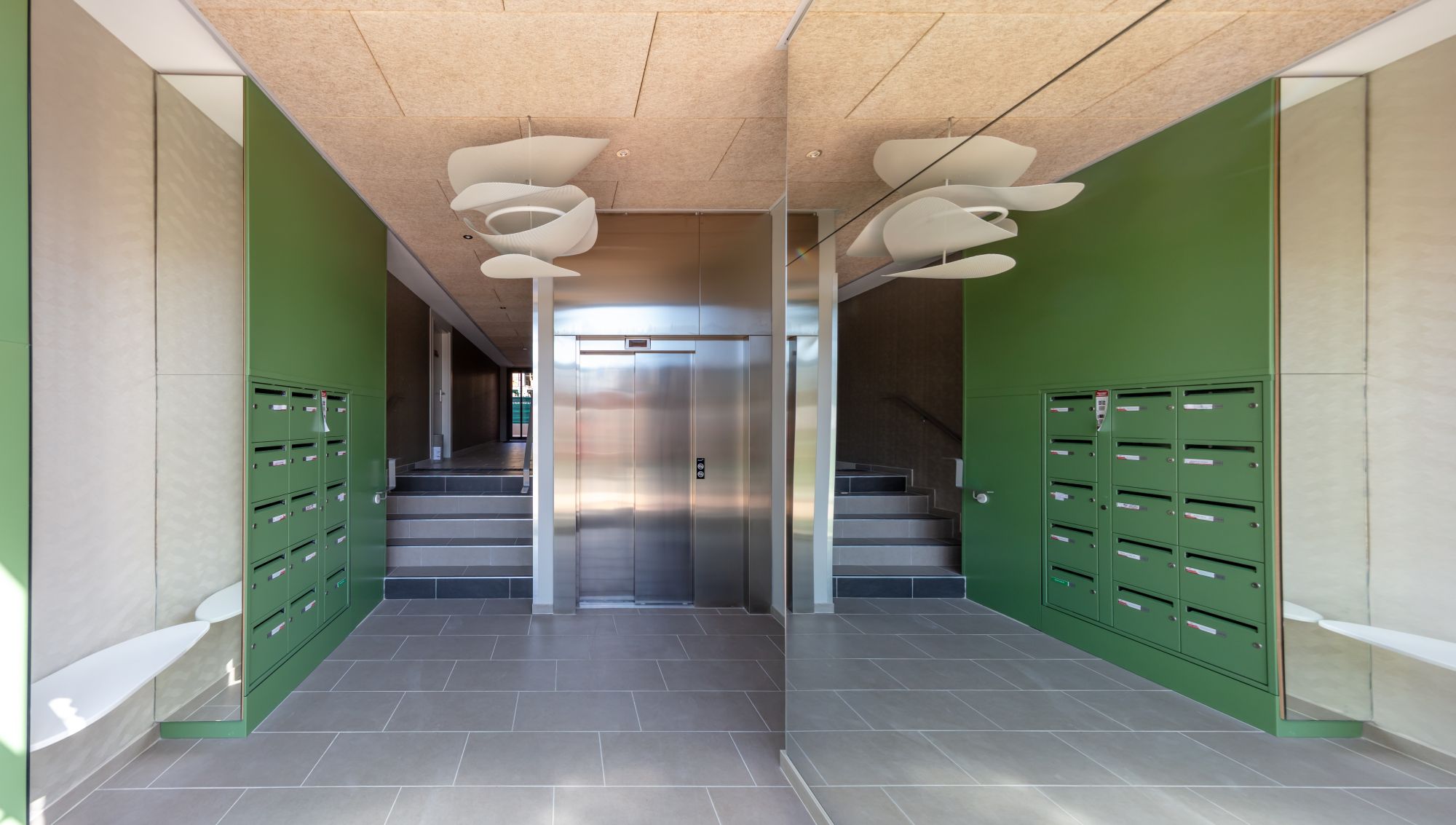Au-delà du soin habituel sur l’ergonomie des baies, des proportions des pièces, un soin particulier est apporté au design des logements. Leur agencement permet d’élargir les usages : les vestibules d’entrée sont aménagés afin de permettre un espace pour le travail par exemple et tous les appartements sont secondés de larges surfaces extérieures, telles une pièce supplémentaire.
