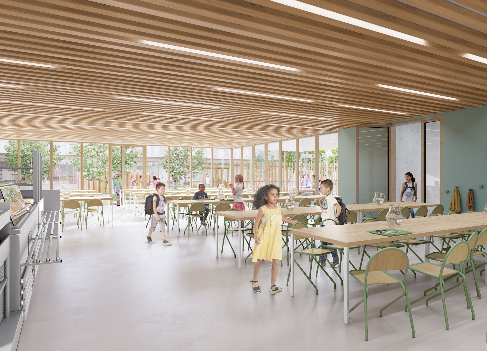 • L’autre destinée à la restauration et la production de repas en liaison directe avec l’aire de livraison mais également les cours de récréation.