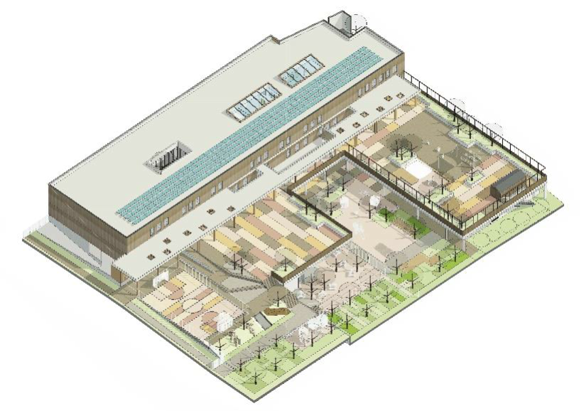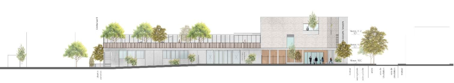 Ces 2 connexions vers le nord de la parcelle, permettent également de valoriser leurs toitures, qui deviennent des cours de récréation.