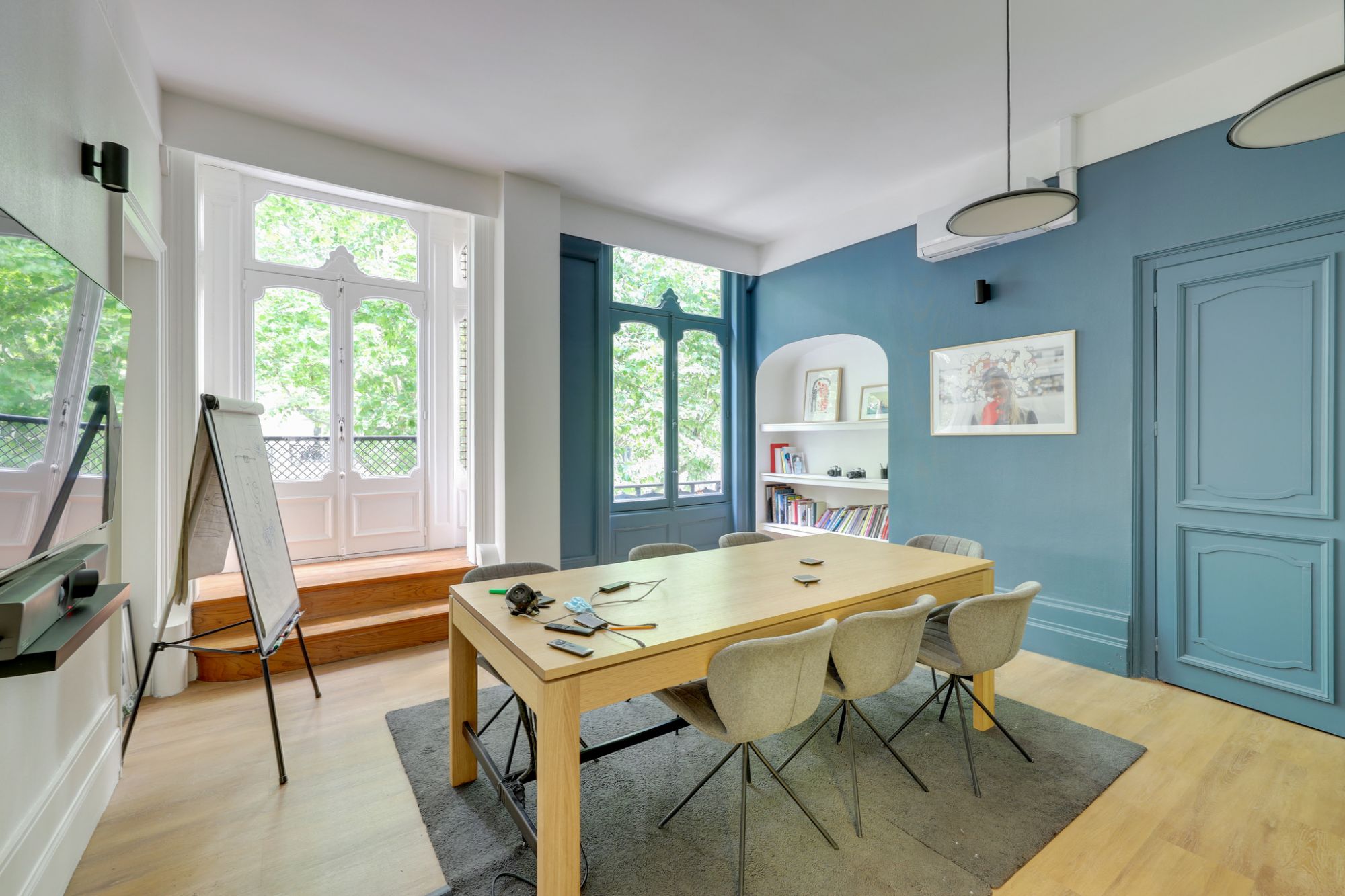 Le bâtiment sur cour qui servait auparavant de parking a été complétement réhabilité. Des menuiseries extérieures ferment maintenant le bâtiment.