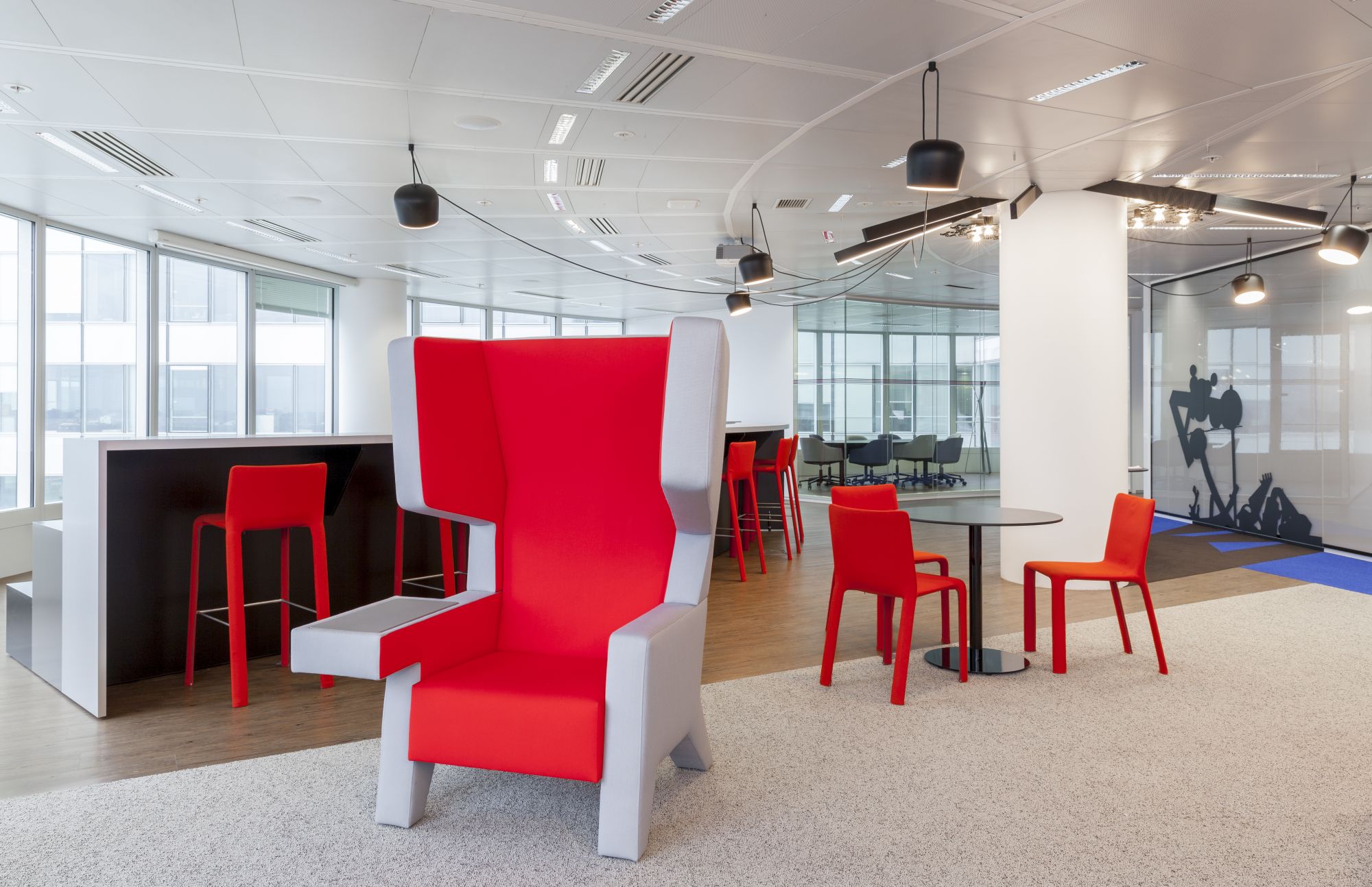 Avec son musée à ciel ouvert, le premier quartier d'affaires européen ne ressemble à aucun autre : des oeuvres architecturales côtoient des oeuvres d'art et créent une identité culturelle forte donc l'établissement est fier. C'est tout naturellement que ce patrimoine culturel et architectural a servi de fil rouge décoratif pour es locaux que le client voulait uniques en leur genre.